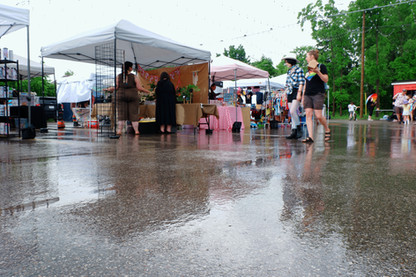 There was a brief moment where the rain let up and we started packing, but we still had a trio of drag royalty ready and waiting to perform their set! Rural Commons saved our butts by opening their shop up for an impromptu perforamce where everyone could stay dry